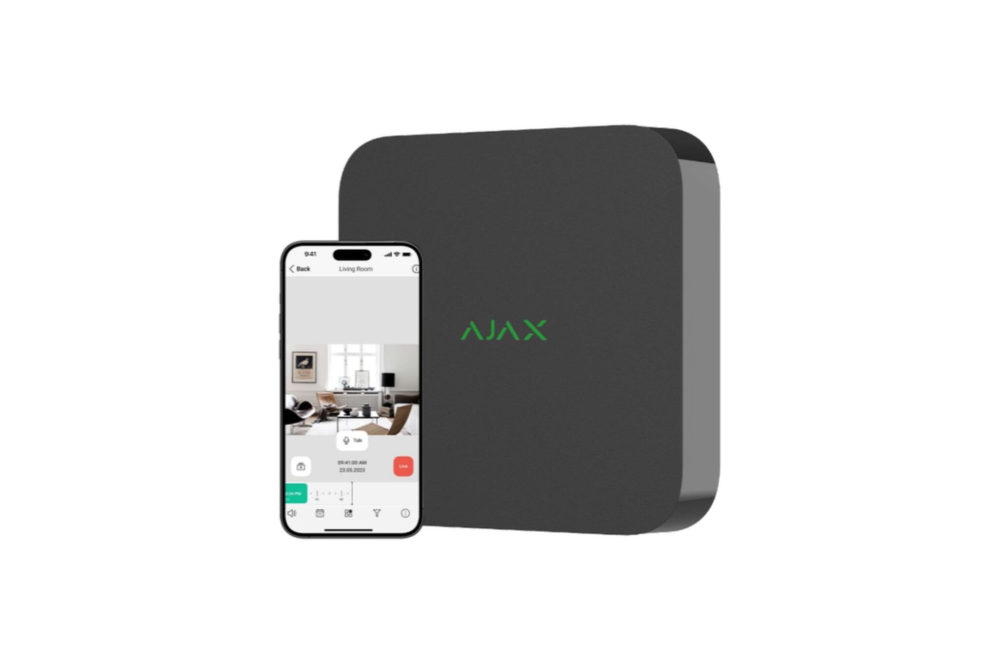 NVR integreert deze videocamera's in het Ajax-systeem. De gebruiker kan opgenomen videobeelden en live video bekijken in Ajax-apps. De videorecorder schrijft gegevens naar een harde schijf (niet inbegrepen). De NVR biedt gebruikers middels vrij te programmeren scenario's videoalarmverificatie.