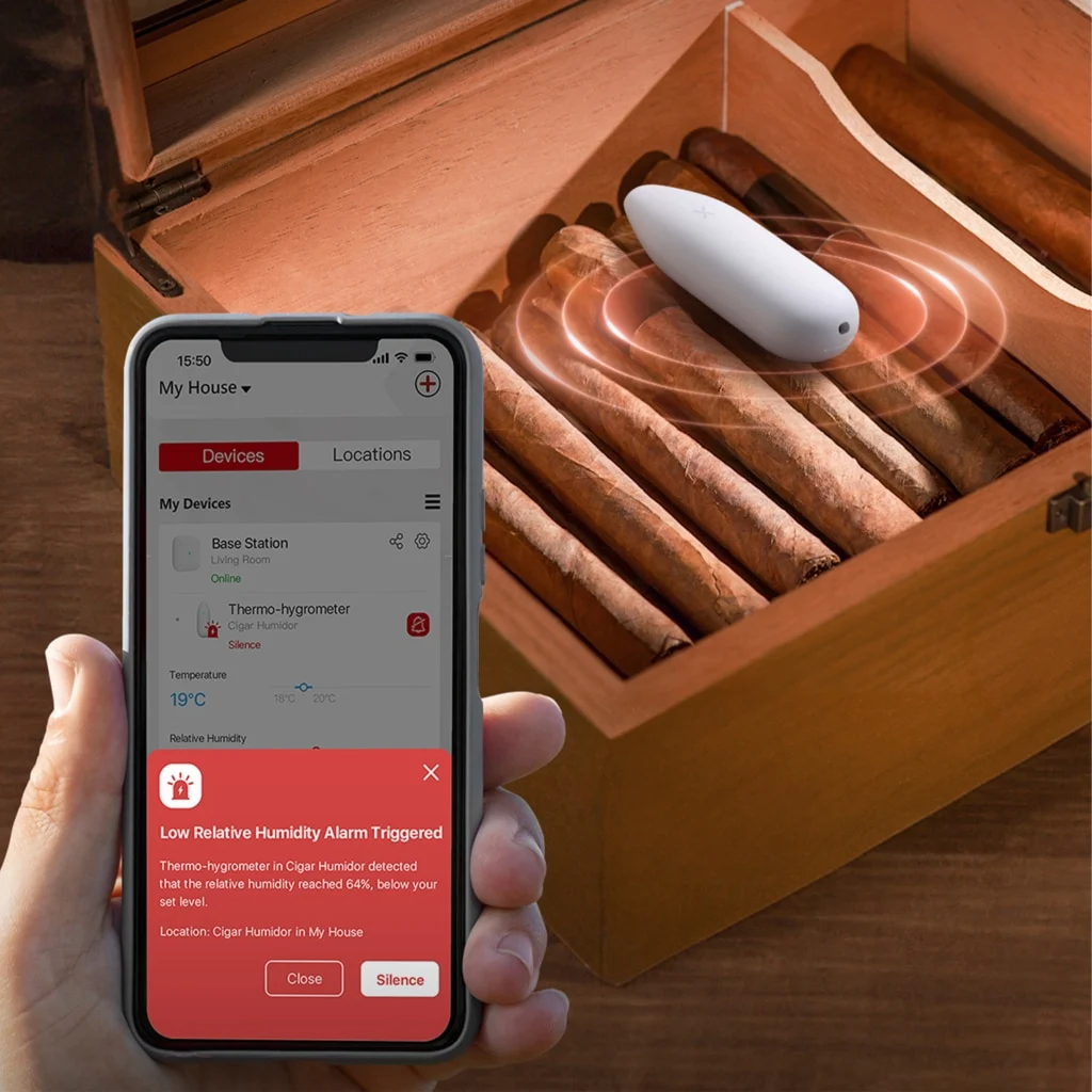 De sensoren zorgen voor nauwkeurige metingen, met een precisie van 0.2 graden Celsius en 2% RH vochtigheid. De handige instelbare pushmeldingen via de app houden je altijd op de hoogte. Daarnaast heeft de hygrometer een bereik tot wel 500 meter afstand van het base station.